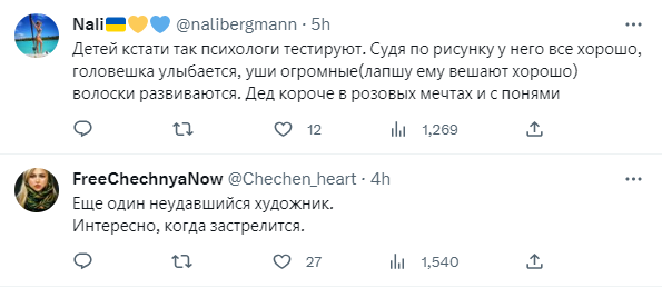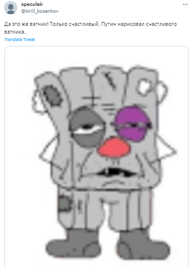 "Путін-художник: регрес таланту за 10 років Від креативної дупи кішки – до Губки Боба з вухами. Чи це вухата каструля кипить? Але у будь-якому випадку маестро вирішив, що це шедевр, вже гідний його сигнатури внизу. Але якщо звернути увагу на підпис – він надто спрощений та кострубатий. Тобто, при підборі двійників талант у малюванні не враховувався? Бо "це" явно програє котячій дупі", - написав український політолог і політтехнолог Олексій Голобуцький.