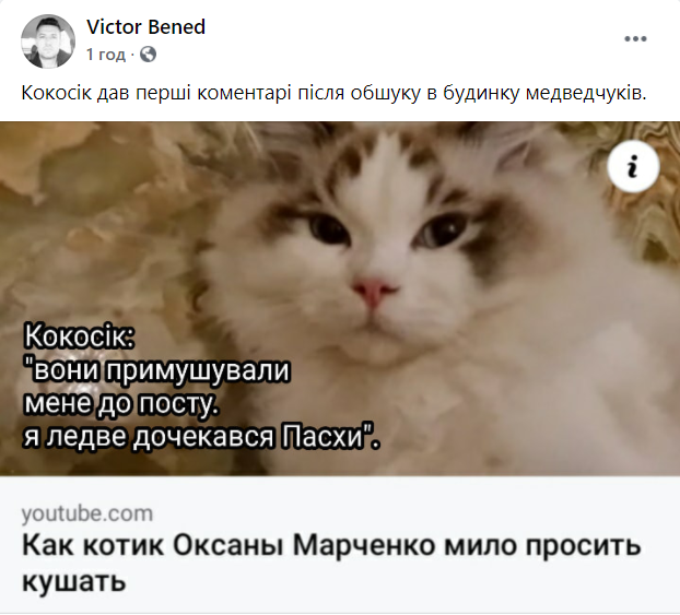 Користувачі мережі висміяли обшуки у приміщеннях народного депутата Віктора Медведчука смішними картинками і мемами. Згадали і святкування 9 травня нардепами від ОПЗЖ лише кілька днів тому, і екс-президента Петра Порошенка, і вже відомого за відео дружини нардепа Оксани Марченко кота Кокоса.