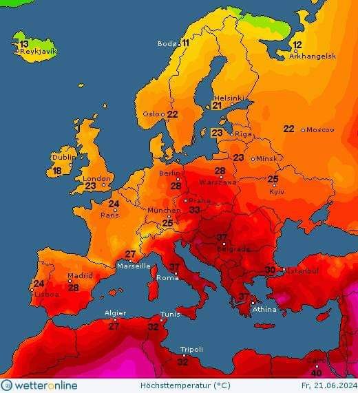 Вона прогнозує, що в п'ятницю, 21 червня, над Україною розташується антициклон Aviv, що зумовить суху, теплу та переважно сонячну погоду. Вдень очікується до +24-29 градусів у переважній більшості областей. Натомість для порівняння Діденко згадує, що на Балканах та в Італії вируватиме спека до +35-39 градусів.