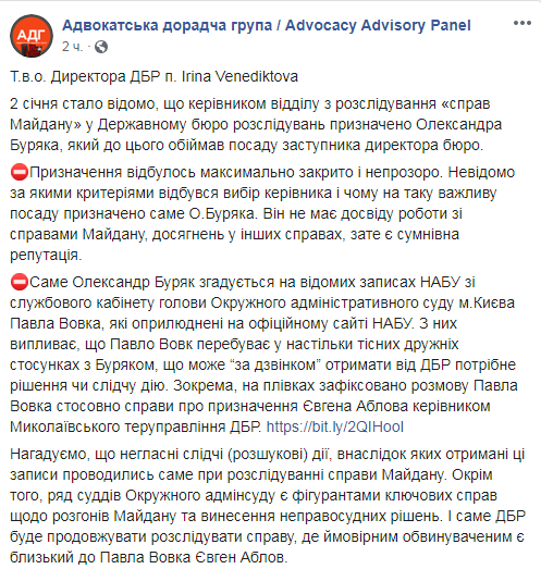 Призначення керівником відділу з розслідування справ Майдану Олександра Буряка відбулося максимально закрито і непрозоро.