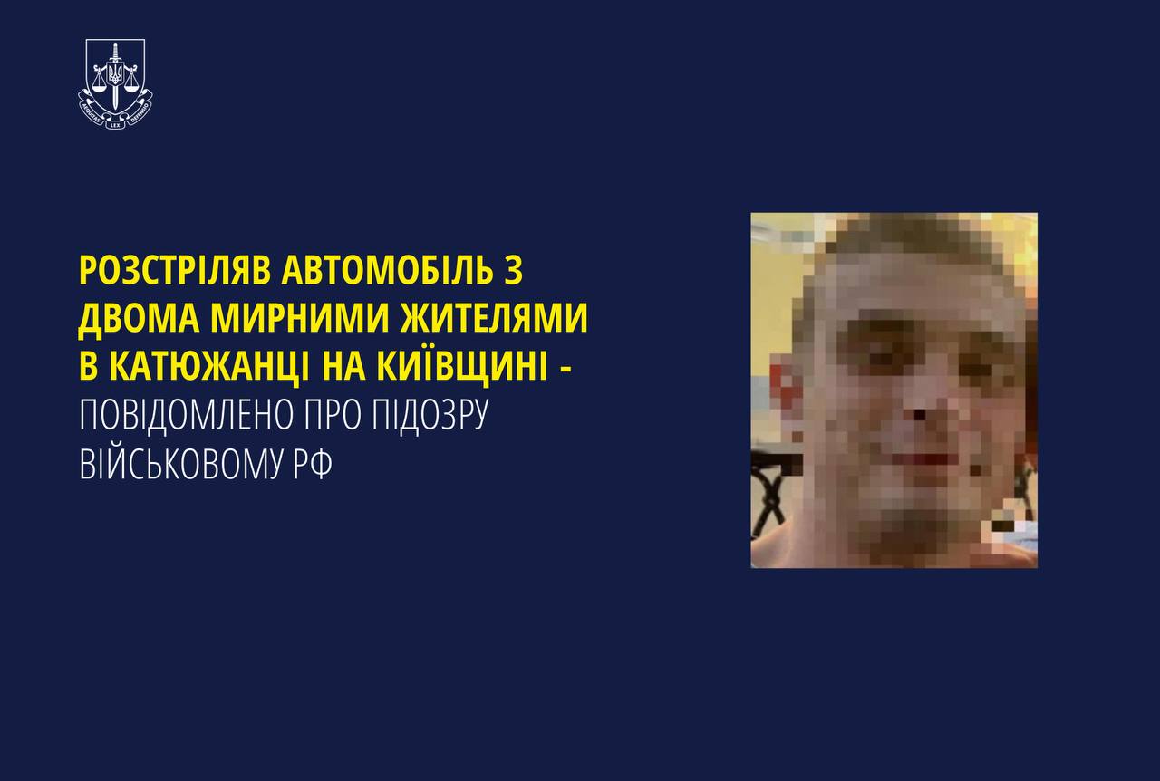 В Офісі Генерального прокурора розповіли про заочне оголошення підозри військовому російської окупаційної армії, який на початку повномасштабного вторгнення РФ розстріляв авто з двома мирними мешканцями в Катюжанці Київської області.