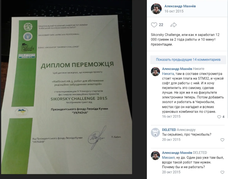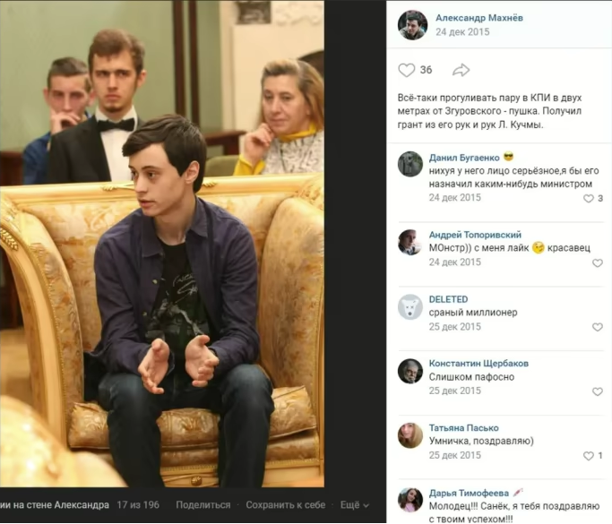 В своїх соцмережах він навіть ділився враженнями після того, як отримав нагороду з рук українського вченого Михайла Згуровського та другого президента України Леоніда Кучми.