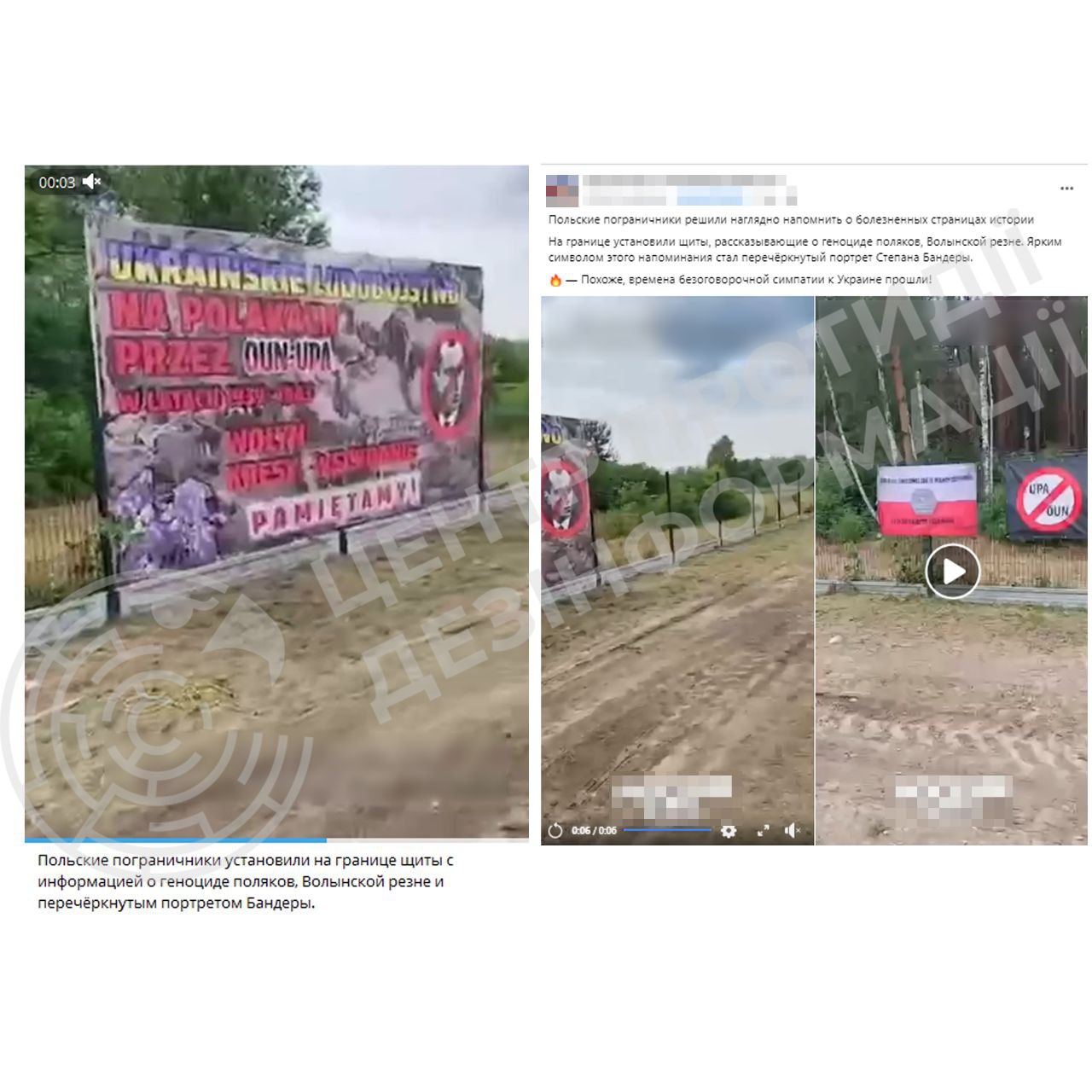 Медіаресурси показують відео, на ньому польські прикордонники нібито встановили щити з написами про "геноцид поляків" на держкордоні.