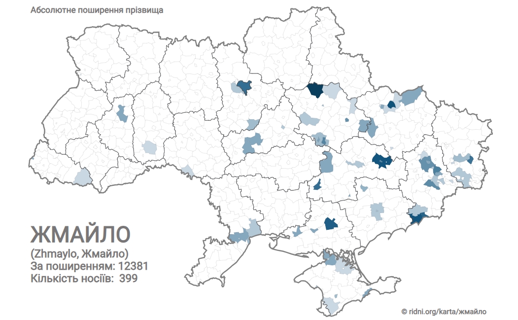 Прізвище Жмайло налічує 399 носіїв. За поширенням займає 12381 місце. Найчастіше зустрічається у Таврії. Поселення компактного проживання: Харків (22), Бодаква (20), Вербки (19) Горностаївка (16), Маріуполь (15). Найпопулярніші імена: Олександр, Валентина.