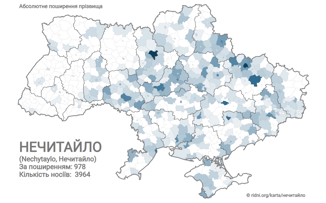 Прізвище Нечитайло налічує 3964 носії. За поширенням посідає 978 місце. Найчастіше зустрічається на Наддніпрянщині. Поселення компактного проживання: Київ (237), Харків (221), Дніпро (90), Запоріжжя (88), Одеса (81). Найпопулярніші імена: Олександр, Тетяна.
