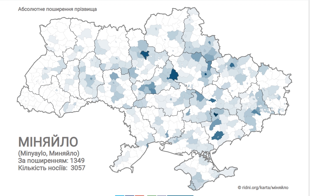 Прізвище Міняйло налічує 3057 носіїв. За поширенням посідає 1349 місце. Найчастіше зустрічається на Наддніпрянщині. Поселення компактного проживання: Запоріжжя (234), Полтава (133), Київ (115) Харків (86), Дніпро (85). Найпопулярніші імена: Олександр, Наталія.
