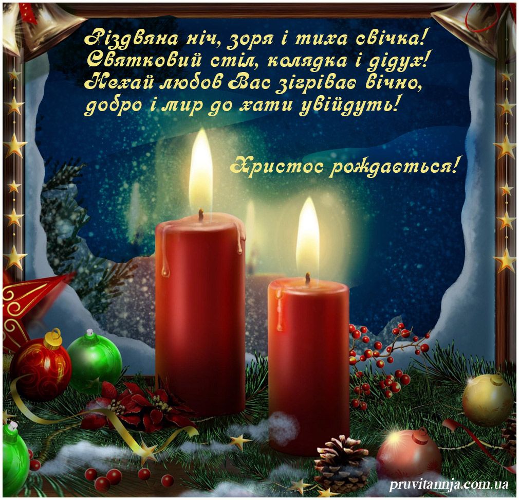 З Різдвом! Від щирого серця і душі вітаємо з цим святом. Нехай Бог береже і захищає. Нехай стравами буде багатий ваш стіл. Сміх і радість хай як річка тече, а щастя осіває ваш життєвий шлях. Нехай Бог злих людей з чорними помислами від будинку вашого відганяє, а доброту і удачу в гості кличе. Нехай сім'я ваша стане міцнішою і теплотою наповнитися кожен ваш день.