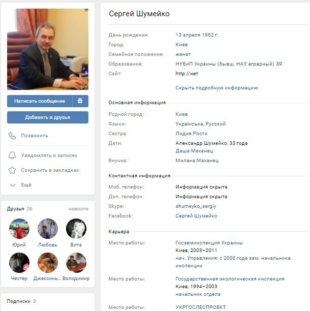 Журналісти виявили, що в одній з соцмереж на сторінці дівчинки є список її родичів, в якому в графі "дідусь" вказано Сергія Шумейка, 1962 року народження.