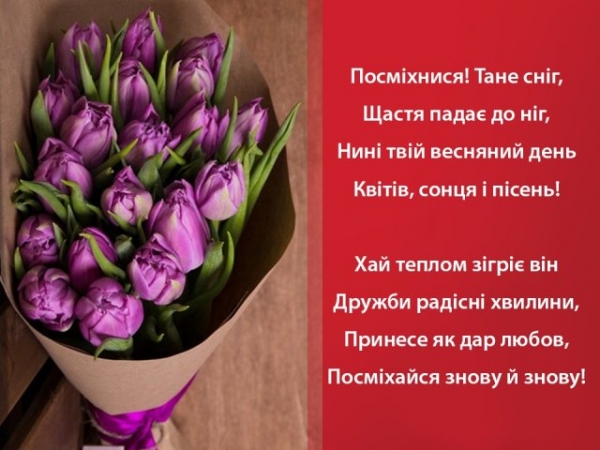 Традиційно Міжнародний жіночий день прийнято відзначати в родинному колі, з друзями або рідними, а також з колегами. У цей день прийнято дарувати представницям прекрасної статі квіти, а конкретно - тюльпани. Саме вони вважаються вісниками весни.
