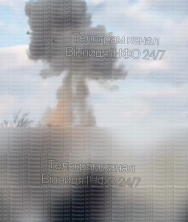 "Величезний стовп диму після влучання по будівлі в центрі Вінниці", — йдеться у повідомленні.