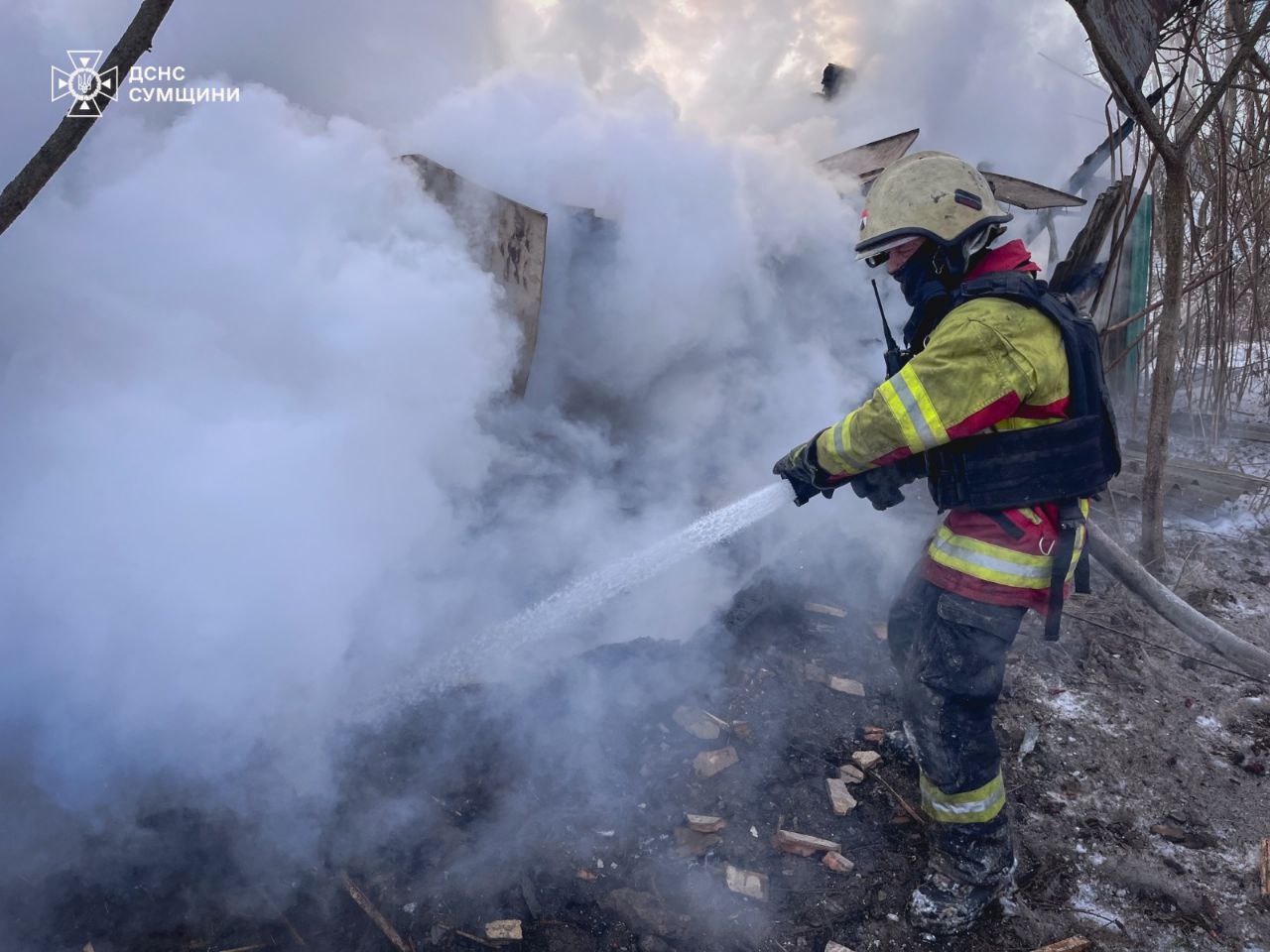 "Сьогодні вранці росіяни нанесли удар по житловому сектору Лебединської громади на Сумщині. Вогонь повністю охопив житловий будинок, також пошкоджені ще 4 домоволодіння. Через загрозу повторних атак, рятувальники були змушені тимчасово зупиняти роботи та відходити в безпечне місце. Усі осередки горіння ліквідовані. Громадяни не постраждали", — повідомили в ДСНС.