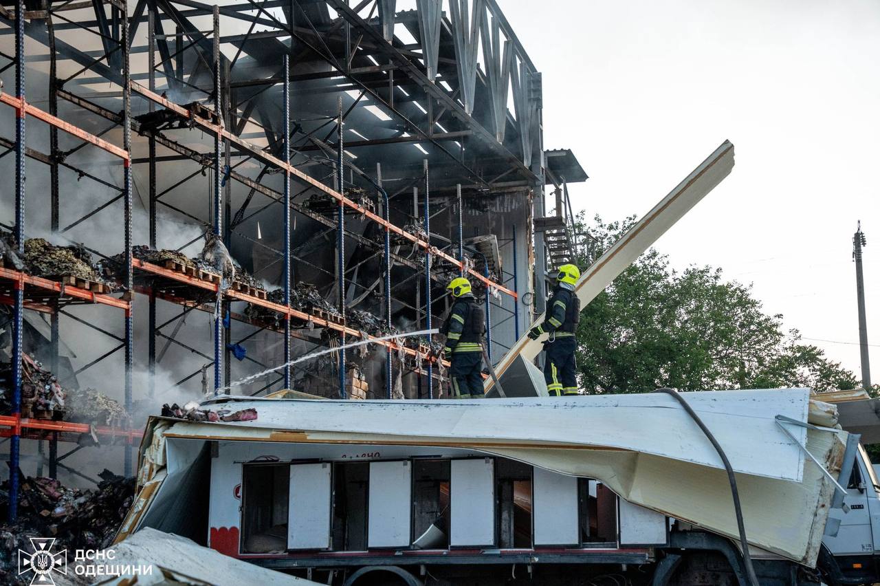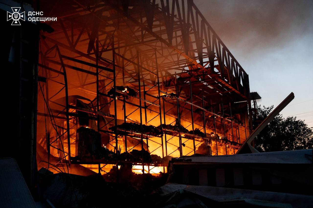 В Одесі через атаку дронів постраждали 4 людини. За різними адресами спалахнули пожежі, проте наймасштабніша була в складських приміщеннях з продуктами харчування.