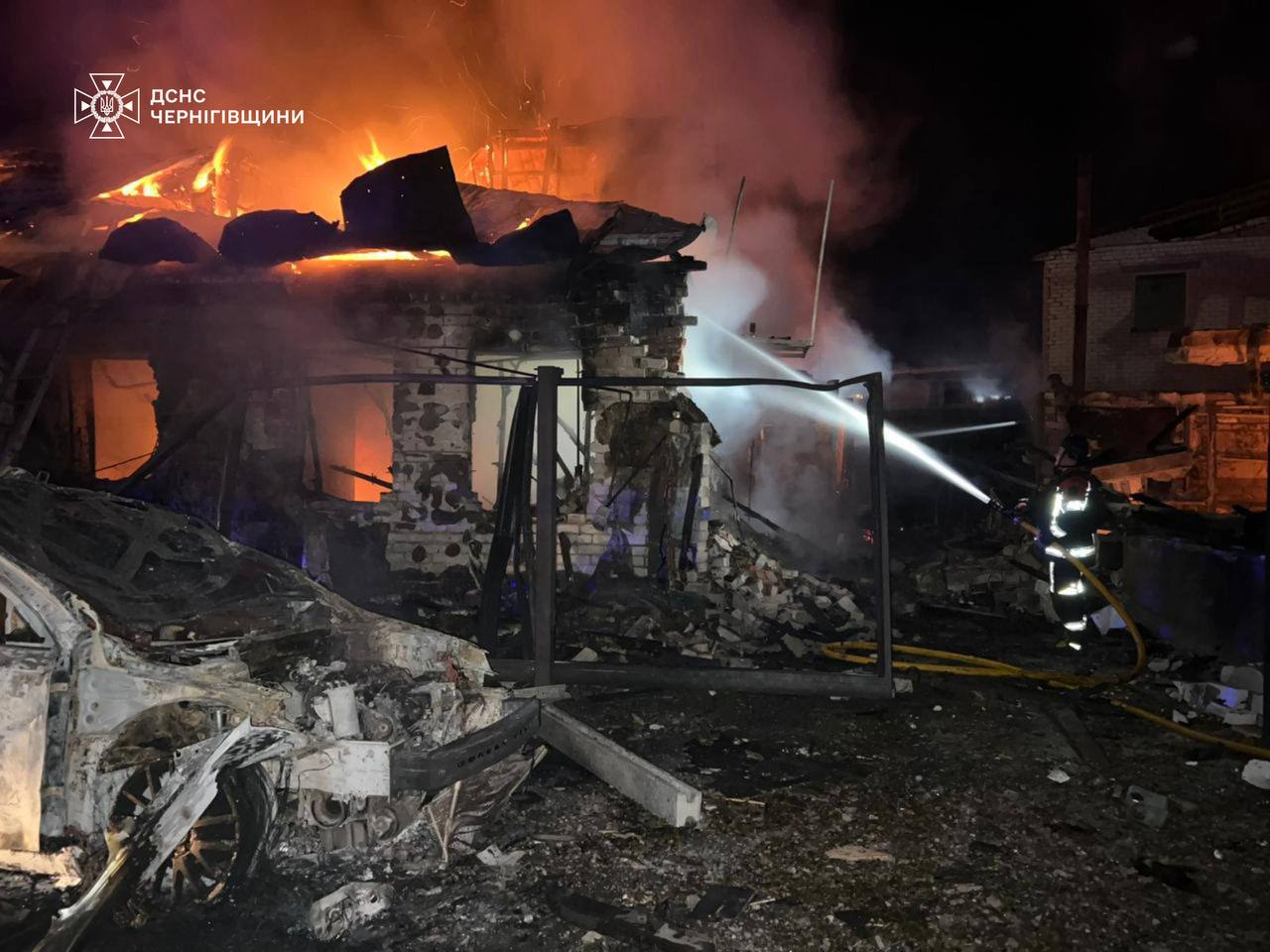 Начальник Чернігівської МВА Дмитро Брижинський уточнив, що через удар згорів приватний будинок, пошкоджені багатоповерхівка, приватні будинки, навчальний заклад і промислове підприємство.