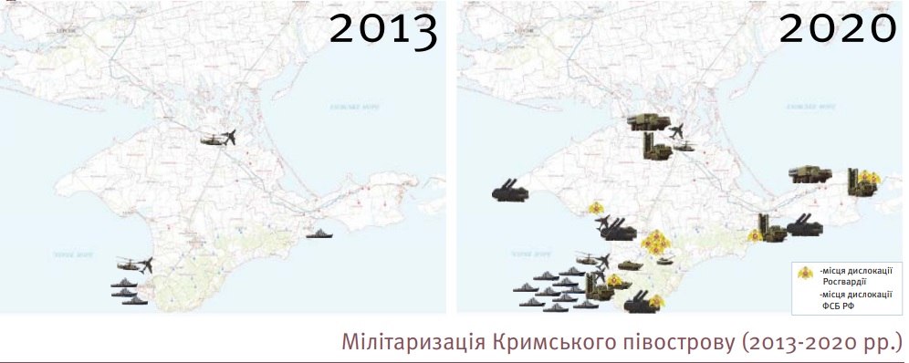 Росія активно нарощує ударні здатності збройних сил на території окупованого Криму, збільшуючи чисельність військ і оснащення новими зразками озброєння і військової техніки та формує умови для посилення на цій території ядерного потенціалу.