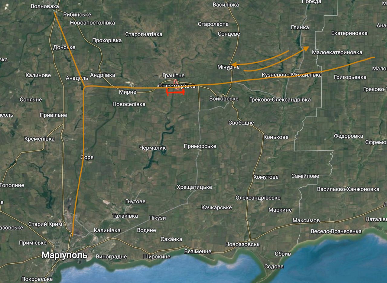 У районі Маріуполя росіяни будують альтернативні шляхи постачання їхніх окупаційних військ на території України та будують потужні укріпрайони з метою завадити ЗСУ вийти на узбережжя Азовського моря.
