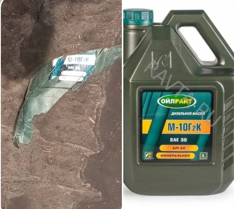 Якщо добре придивитися, то можна розгледіти, що то - частина розбитої каністри для дизельного мастила.