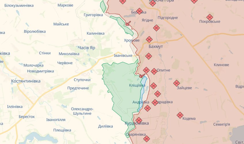 На Бахмутському напрямку наші захисники відбили 5 атак противника поблизу Кліщіївки та східніше Південного Донецької області. Сили оборони України продовжують штурмові дії південніше Бахмута Донецької області, завдають ворогу втрат у живій силі та техніці, закріплюються на досягнутих рубежах.
