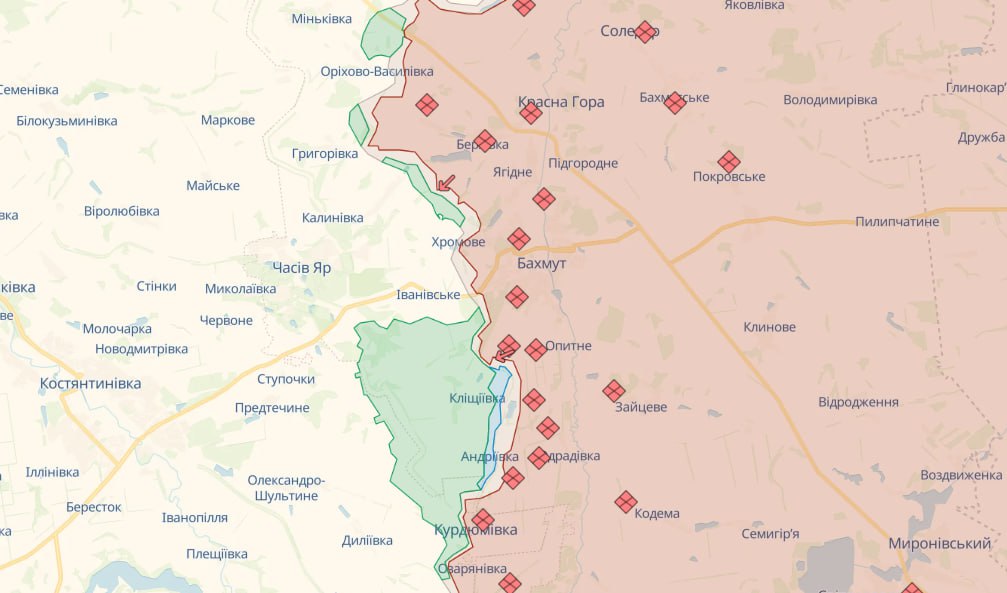 На Бахмутському напрямку наші захисники відбили 12 атак окупантів біля Богданівки, Іванівського, Кліщіївки та Андріївки Донецької області. Також, Сили оборони України продовжують штурмові дії південніше Бахмута Донецької області, завдають ворогу втрат у живій силі та техніці, закріплюються на досягнутих рубежах.