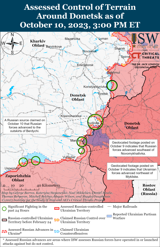 Експерти вважають, що активізація російських наступальних операцій у районі Авдіївки та Жереб'янки збігається з іншими локальними наступальними операціями в Луганській області та східній частині Запорізької області, які, ймовірно, спрямовані на те, щоб перешкодити українському командуванню перекинути сили на критичні ділянки фронту в західній частині Запорізької області.