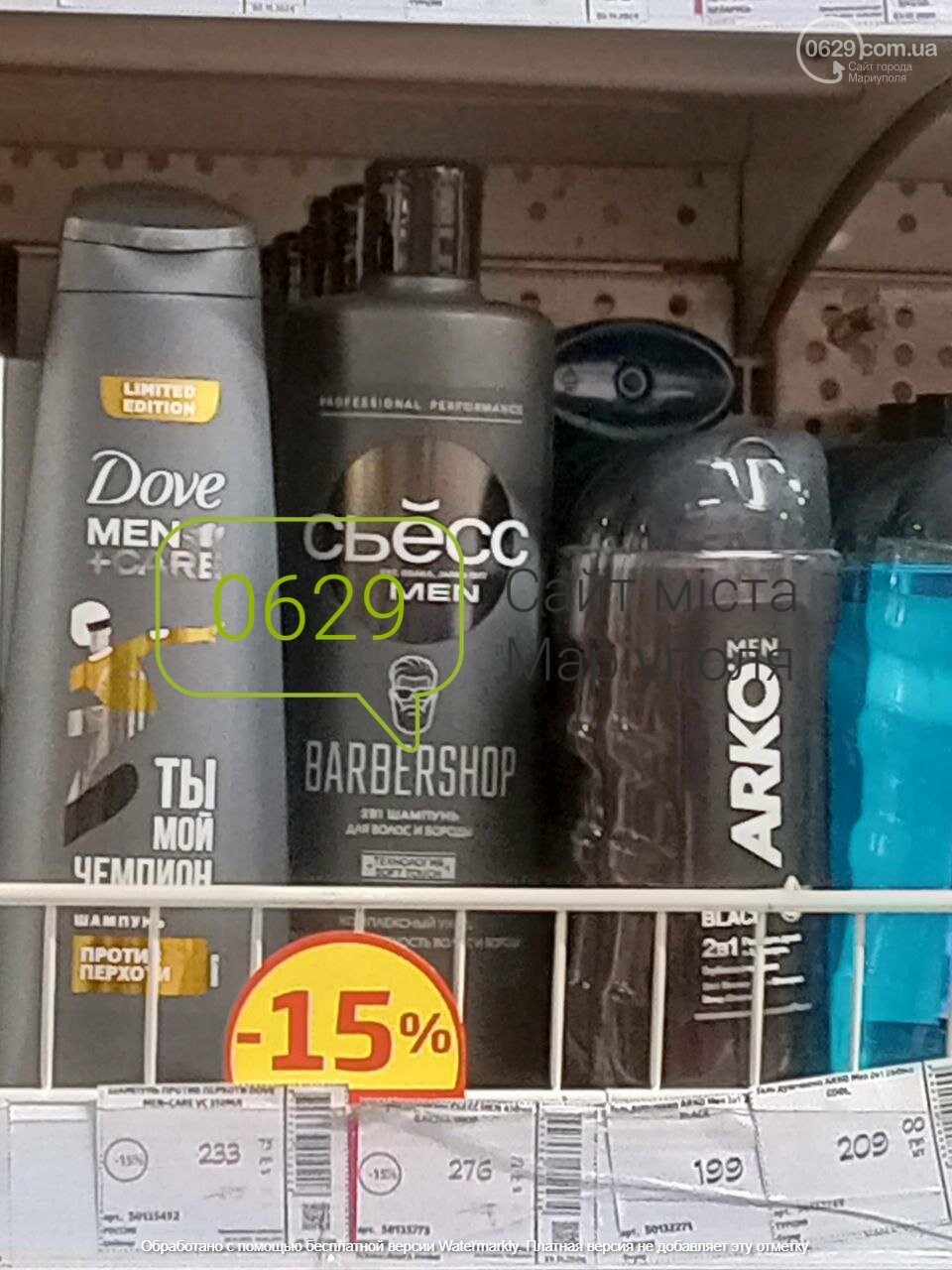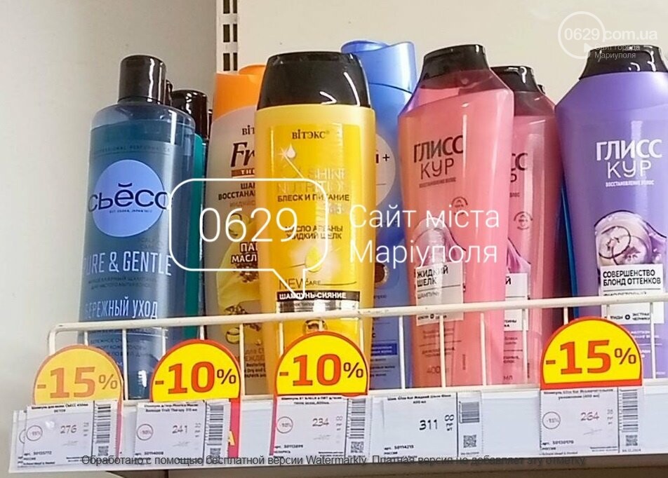 В окупованому Маріуполі полиці магазинів заповнені підробленими товарами під брендами "Фа", "Шаума", "Глісс курей" та багатьох інших.