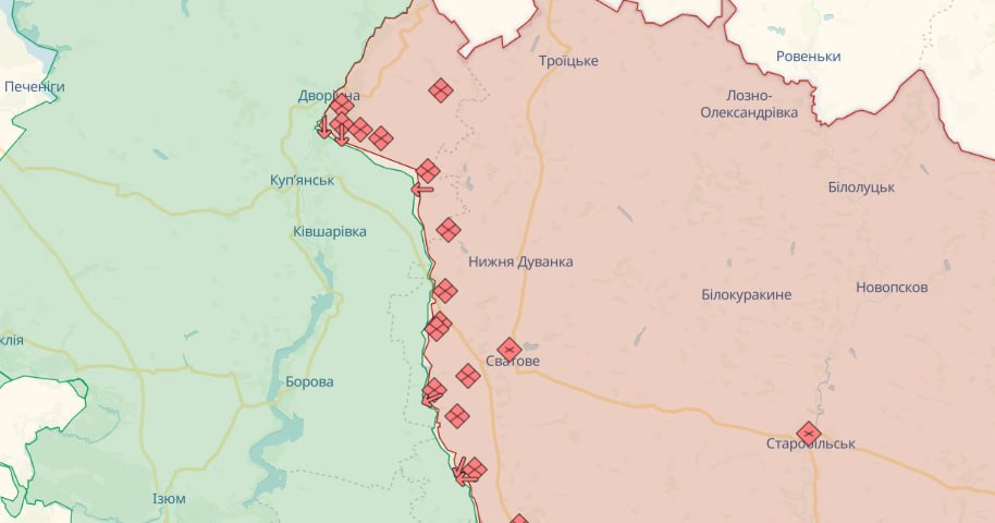 На Сіверському та Слобожанському напрямках противник зберігає військову присутність у прикордонних районах, проводить активну диверсійну діяльність з метою недопущення перекидання наших військ на загрозливі напрямки, нарощує щільність мінно-вибухових загороджень вздовж державного кордону в бєлгородській області.
