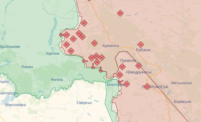 На Лиманському напрямку нашими воїнами відбито 12 атак противника в районах населених пунктів Терни, Ямполівка Донецької області та Білогорівка Луганської області.