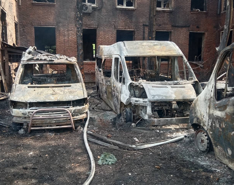 Російські окупанти під час ранкової атаки 25 квітня на Павлоград Дніпропетровської області знищили вщент базу волонтерського Медичного батальйону "Госпітальєри" з усім майном та технікою, що були в ній.