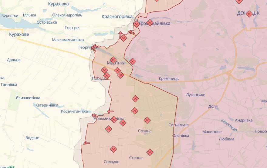 На Новопавлівському напрямку Сили оборони продовжують стримувати ворога в районах населених пунктів Красногорівка, Георгіївка, Новомихайлівка, Водяне та Урожайне Донецької області, де ворог, за підтримки авіації, 24 рази намагався прорвати оборону наших військ.