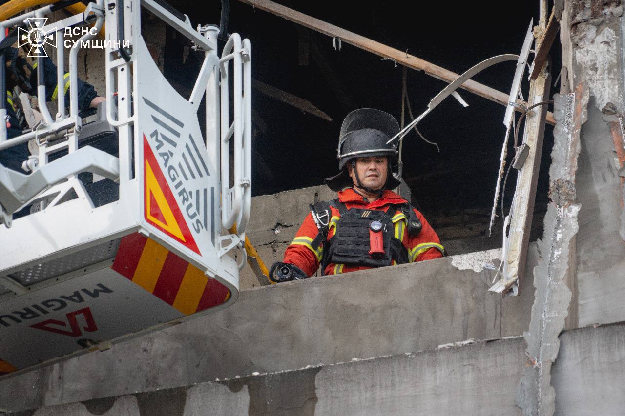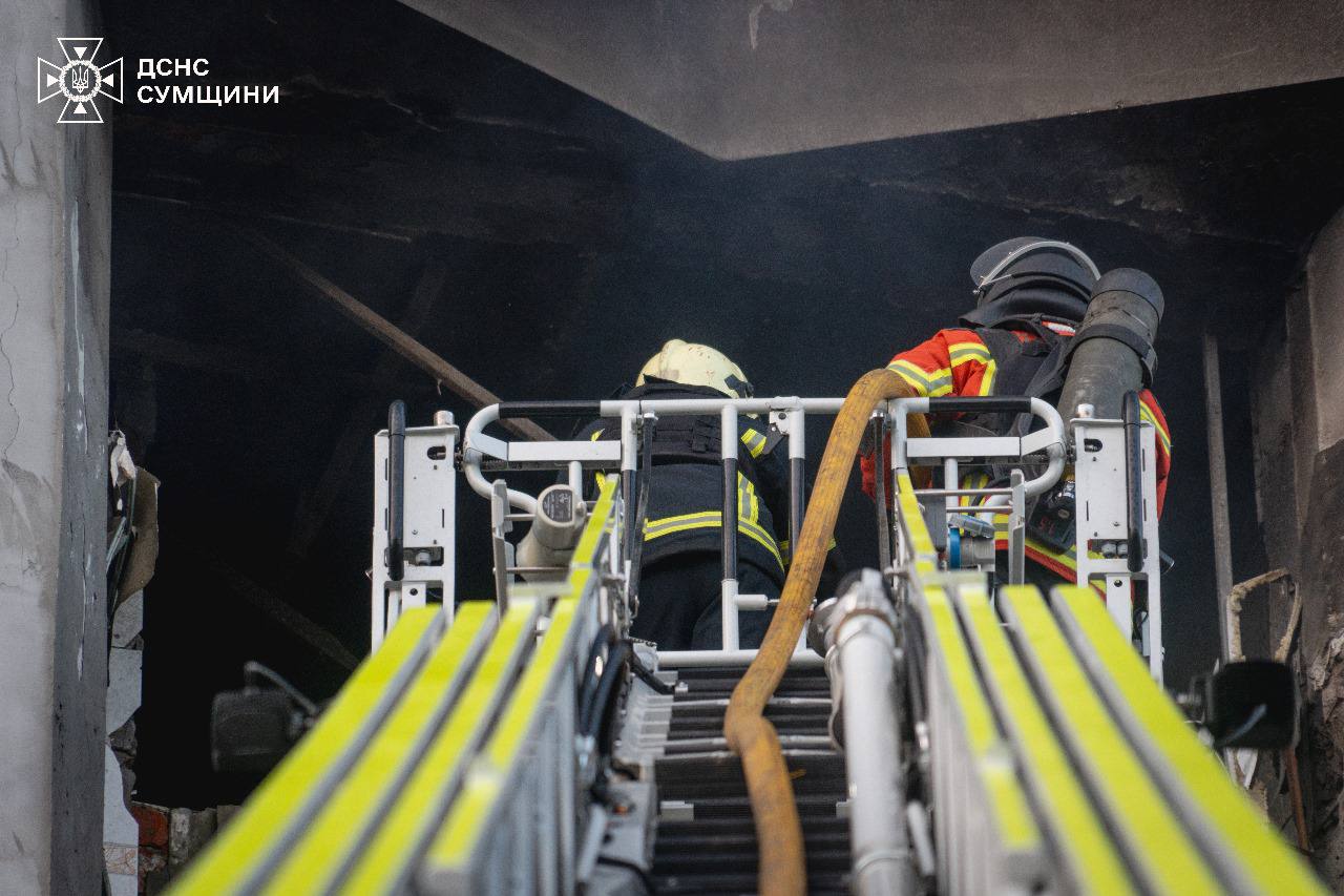"Суми: рятувальники ліквідували наслідки чергової російської атаки. Вранці ворог знову наніс удар по обласному центру", – уточнюють надзвичайники.
