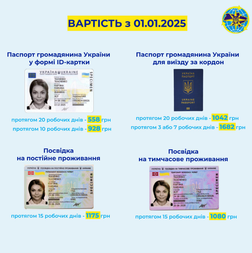 З 1 січня 2025 року ДП Поліграфічний комбінат "Україна" змінює вартість бланків окремих біометричних документів.