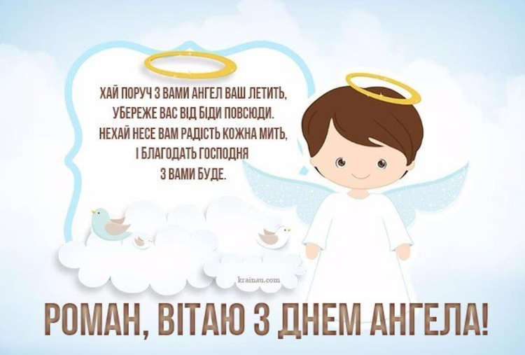 Кажуть, ангел-хранитель нас направляє на вірний шлях, якщо ми щиро віримо в Бога і існування вищих покровителів. Віра в добро допомагає побачити істину на життєвому перехресті, а особистий ангел залишає нам знаки і підказки для усвідомлених рішень. Я тобі бажаю Роман, щоб твій ангел-охоронець завжди приглядував за тобою і оберігав тебе від життєвих негараздів. З Днем ангела!