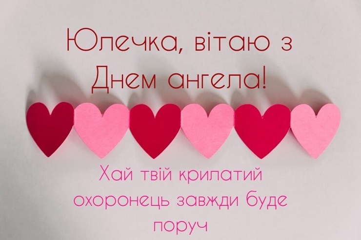 Юленько, вітаю тебе з іменинами! Нехай твоє життя буде сповнене сонця, радостей та приємних моментів, а доля підносить тільки гарні сюрпризи! Залишайся такою ж доброю і чесною людиною, а також не бійся боротися за своє щастя! Твій ангел-охоронець у цьому допоможе!