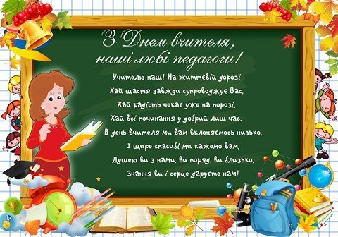 Зі святом! Нехай робота вчителя проносить безмежне задоволення, а учні радують вас своїми успіхами та перемогами в навчанні.