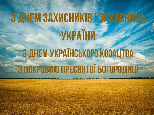 Сьогодні Україна відзначає два славетних свята – День українського козацтва та Покрови Пресвятої Богородиці. Ці свята нерозривно пов'язані між собою, адже Божа Матір – це заступниця і покровителька наших козаків. Й донині нащадки козаків розвивають найкращі традиції наших предків, що є для нас зразком доблесті й відданості Україні. З усього серця вітаю з цими знаменними святами всіх громадян України, гідних нащадків великих прадідів, у чиїх жилах тече гаряча козацька кров і живе дух наших героїчних попередників!