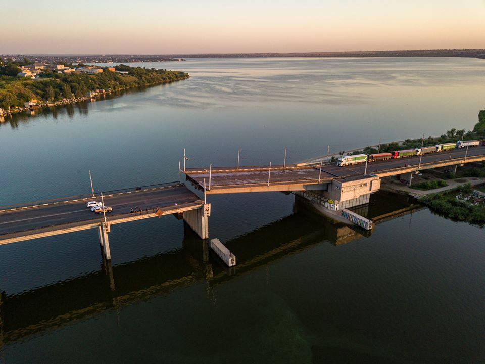 Через технічні неполадки частина конструкції розвідного моста над річкою Інгул піднялася на висоту понад три метри і продовжувала повільно підніматися. Рух транспорту на цій стратегічно важливій переправі було заблоковано.
