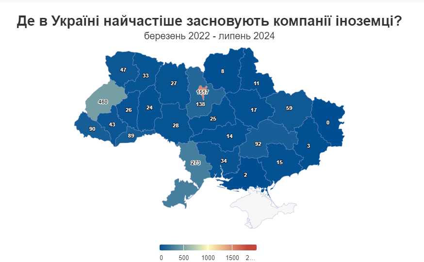 З початку повномасштабної війни громадяни з понад 100 країн заснували більш ніж 3 тисячі компаній в Україні.