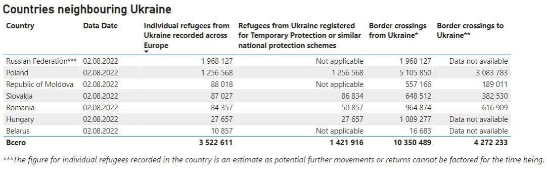У Молдові опинилися 88 тис. біженців з України, приблизно така ж кількість українців осіла у Словаччині та Румунії, у Білорусі – 10,8 тис. (що навіть менше, аніж на Кіпрі – 12,8 тис.).