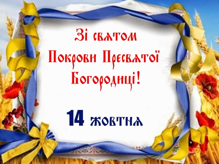 Нехай Покрова духмяним жовтневим запахом українського хліба принесе у ваш дім щастя і добро, порозуміння та згуртованість, мир та любов! Міцного здоров'я, бадьорості духу, успіхів у всіх починаннях!