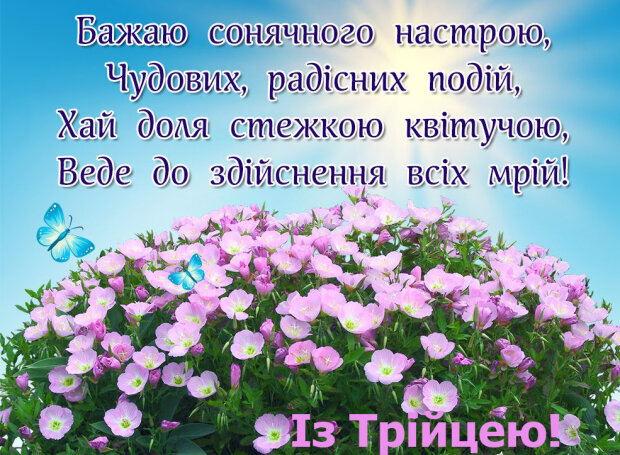 Нехай свято Трійці відкриє серця двері до надії. Нехай перед тобою розстеляється квіткова поляна щастя і любові!