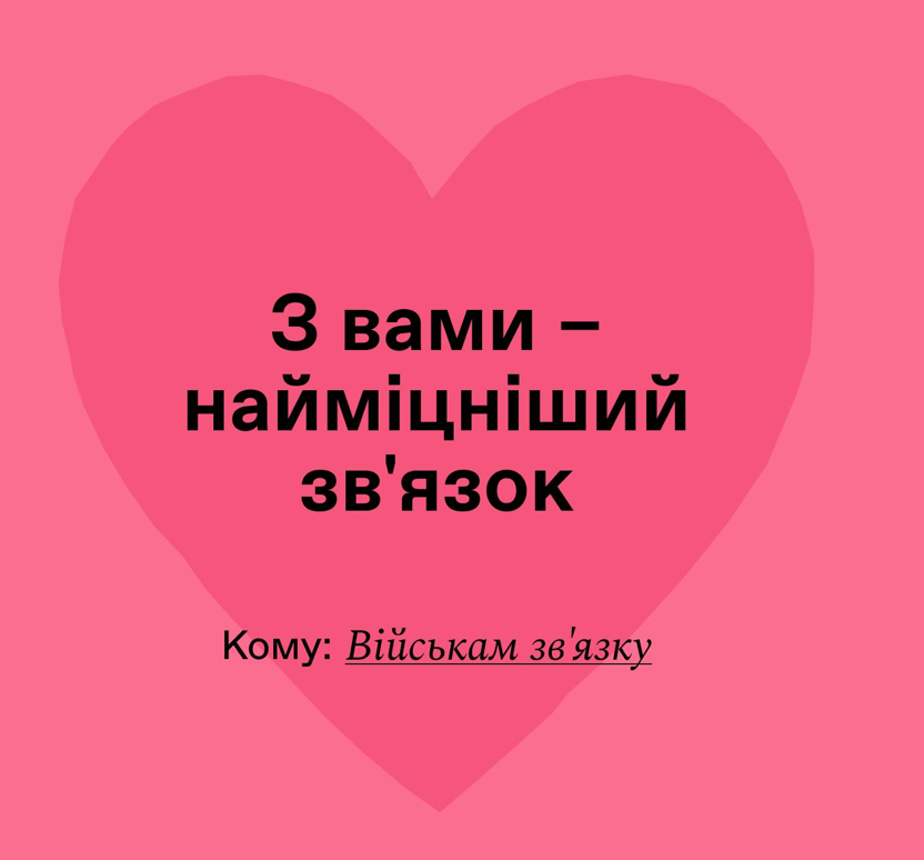 Тому "Апостроф", посилаючись на матеріали "Платформи", зібрав символічні "валентинки" та листівки до дня закоханих, щоб привітати українських захисників.