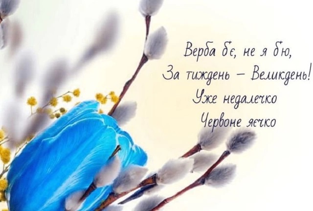 Нехай навіяний вербою аромат весни стане символом нового життя. Нехай ці перші паростки символізують початок нового шляху, що веде до щастя, миру і добробуту. Оберігайте один одного від неприємностей, як легке полум"я свічки від випадкового подиху вітру.