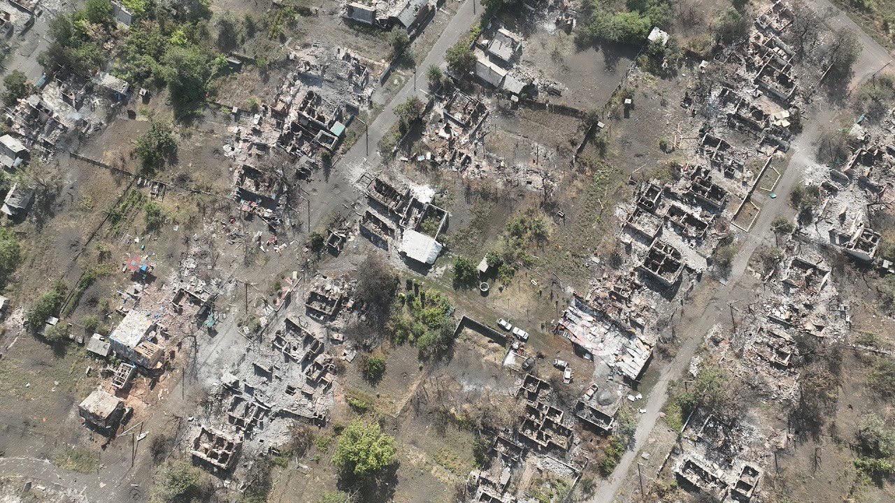 У мережі українські військовослужбовці показали кадри з висоти "пташиного польоту" Новогродівки Покровського району Донецької області. Там три тижні тривають активні бойові дії.