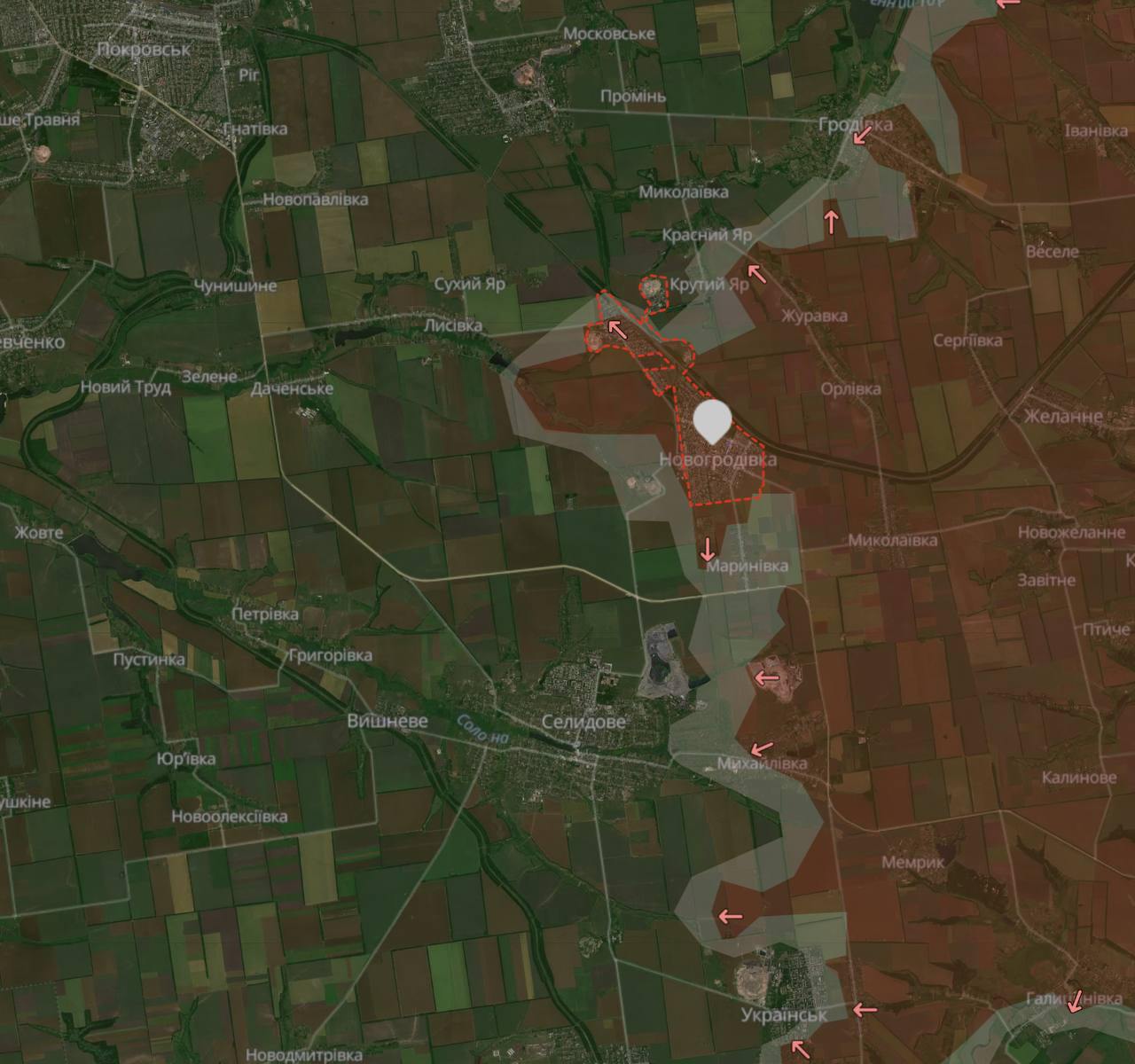 Кілька тижнів тому в Інституті вивчення війни повідомляли, що російські окупаційні війська досягли "значного тактичного просування" на Покровському напрямку, зокрема в місті Новогродівка, попри повідомлення про те, що українські війська відступили з окремих ділянок.