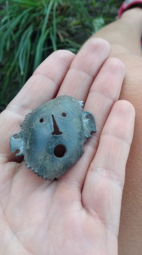 За словами Аффельськи, свинцева пластина, можливо, виконувала функції незвичайної друку. Мідну аплікацію могли використовувати як прикрасу для одягу, наприклад, на поясі, на що вказують кріпильні отвори. Звертає на себе увагу точна обробка - видно вуха, чітко позначені очі, борода і волосся.