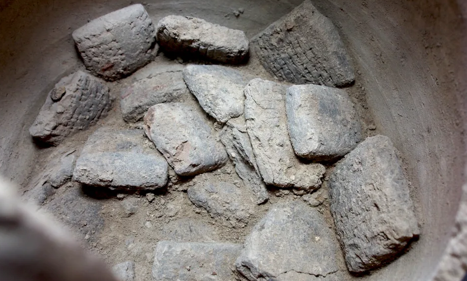 Археологи знайшли 92 плити в керамічній посудині, яку було покрито товстим шаром глини, можливо, щоб зберегти її вміст для майбутніх поколінь. Стан, в якому вони були виявлені, говорить про те, що ймовірно, вони були заховані незабаром після того, як будівля була зруйнована.