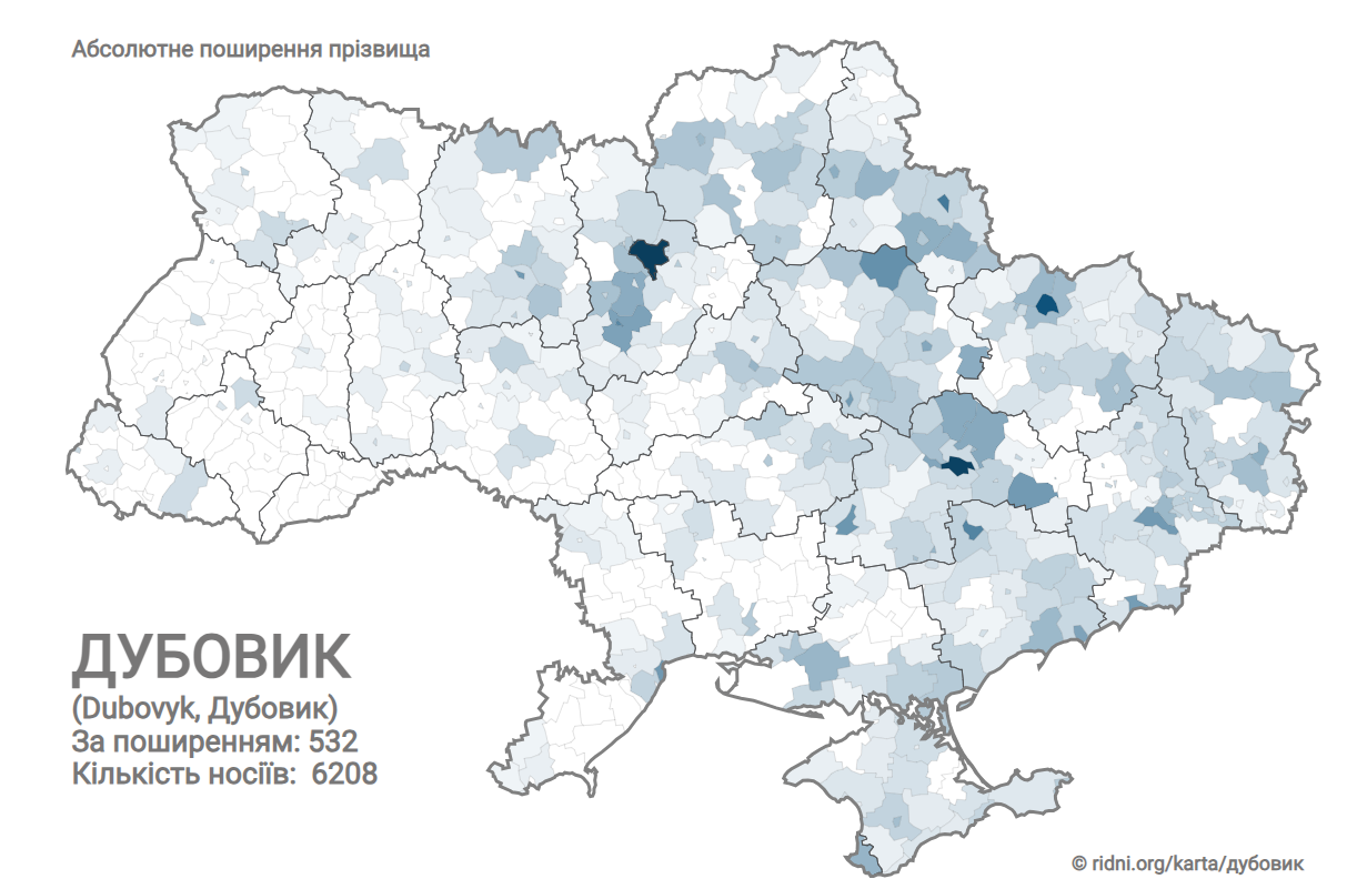 Скажімо, прізвище Дубовик налічує 6208 носіїв й за поширенням займає 532 місце.