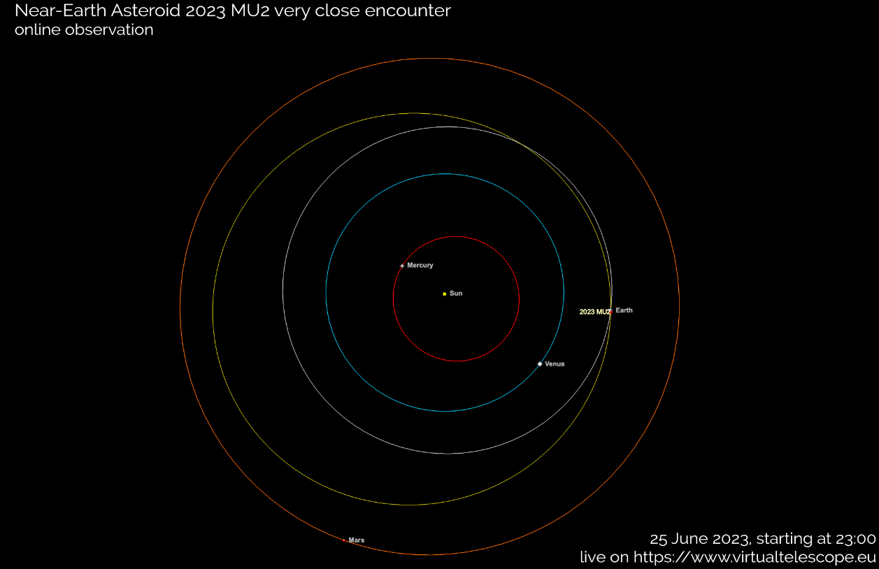 За падінням 2023 MU2 можна буде спостерігати у прямому етері на YouTube-каналі The Virtual Telescope Project. Трансляція почнеться о 02:00 за київським часом.