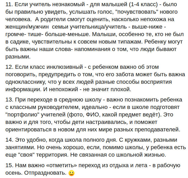 "Якщо буде час і сили - здорово записати відо-вітання від учителя, зібрати фото всіх дітей, зробити колаж з фотографій. І кожен навчальний день перший місяць починати з такої заставки-колажу. До 1 вересня зустрітися на тій платформі, на якій буде проходити навчання - щоб всі один на одного подивилися. Вчилися включати камери та інше. Прекрасно - придумати - вибрати пісню - яку б могли співати всім класом - загальна маленька пісня класу - завжди про зближення (але потрібно, щоб пісню вибрали самі діти).