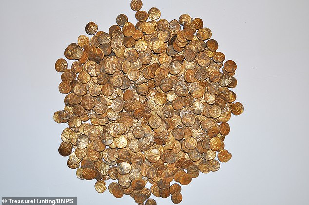 Повернувшись на місце з металошукачем, англієць знайшов глечик або урну, в якій зберігалися інші монети. Чоловік відніс золотий улов додому в двох сумках з супермаркету і повідомив місцевий офіс, який займається знахідками скарбів в Великій Британії.