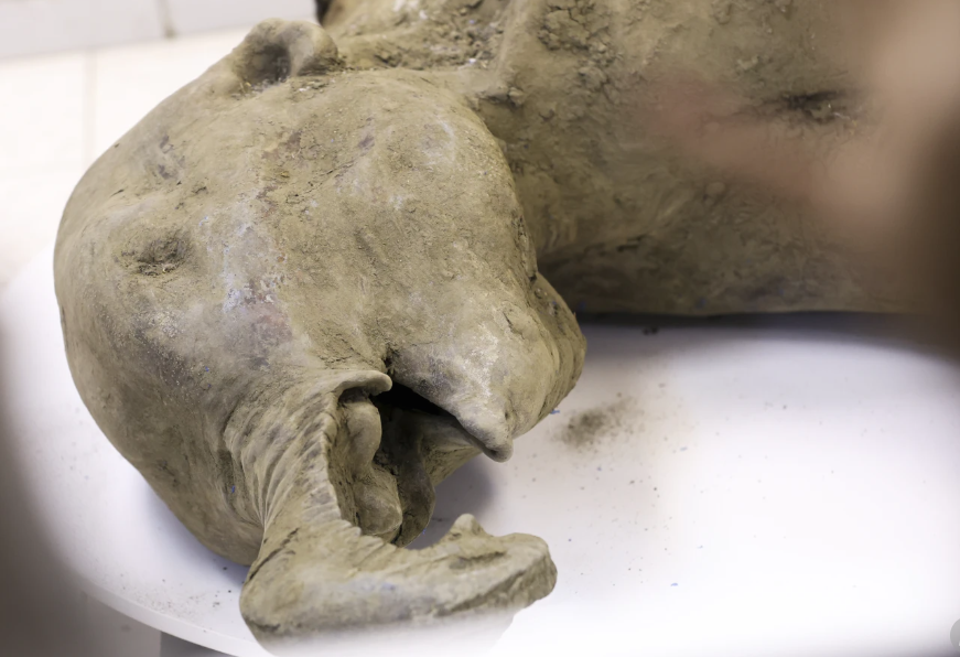 "Місцеві жителі випадково опинилися в Батагайці… і помітили, що теля мамонта частково відтануло від стіни, приблизно на 4 м під поверхнею", – розповів Максим Черпасов, керівник лабораторії Музею мамонтів імені Лазарєва.